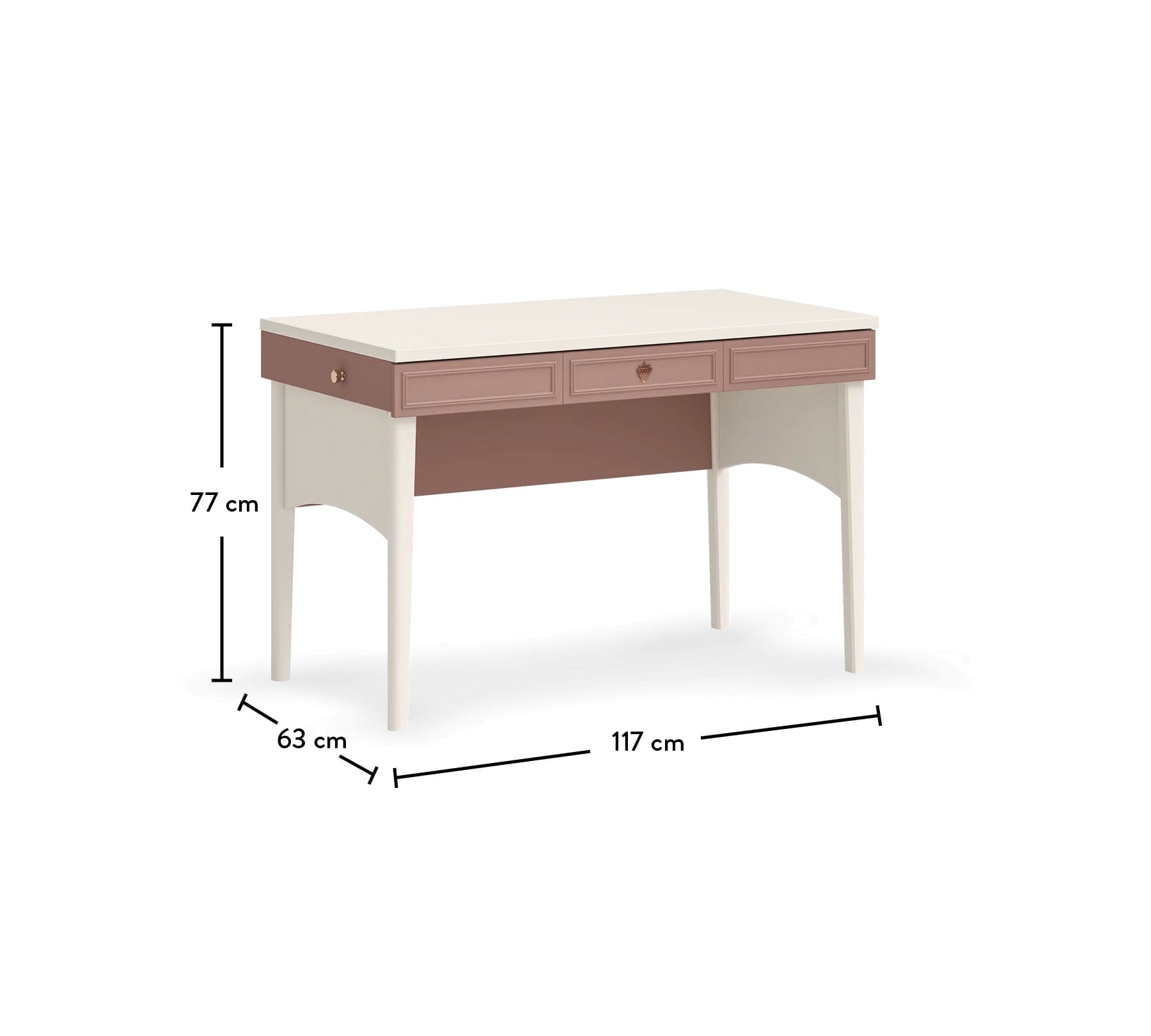 Biroul de studiu Pearl subliniază importanța unui spațiu de lucru organizat pentru a vă simți productivi. Cu dimensiunile sale ergonomice, oferă o zonă de lucru eficientă cu măsurători de 117 cm.