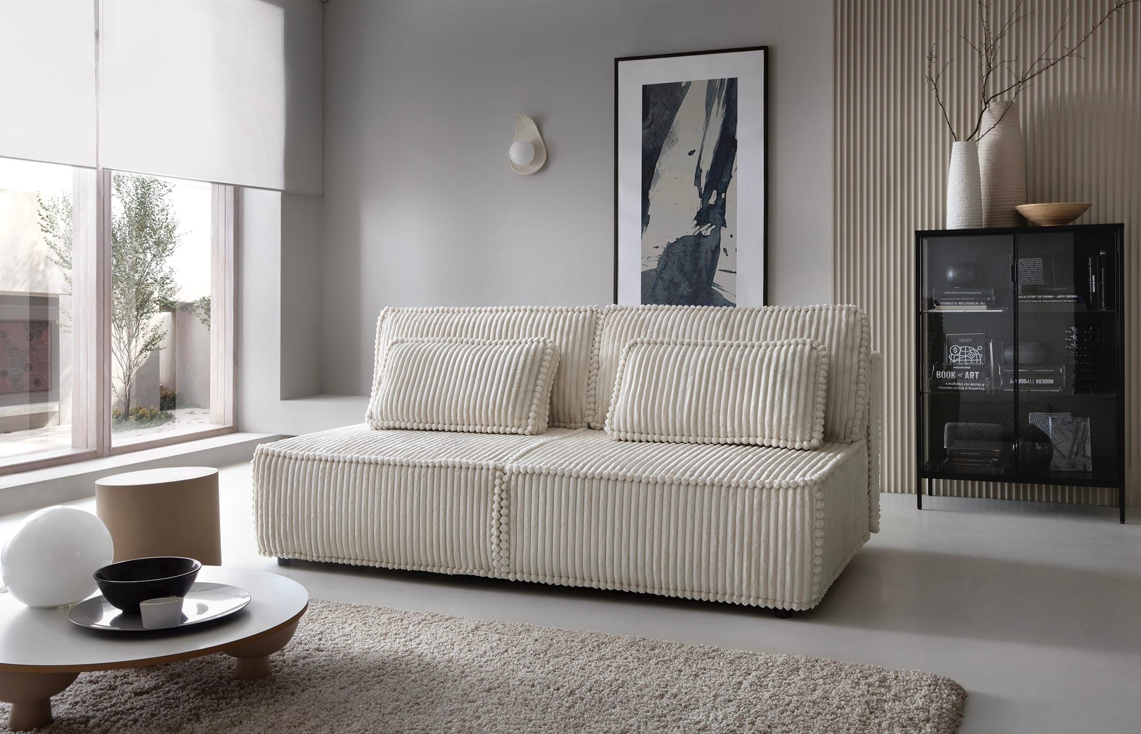 Canapeaua Lomma este piesa de mobilier care aduce în living un aer sofisticat, combinând stilul modern cu funcționalitatea practică. Tapițată cu velur raiat de calitate superioară, plăcut la atingere și extrem de elegant, în nuanța luminoasă de crem, Lomma se integrează cu ușurință în orice decor contemporan.