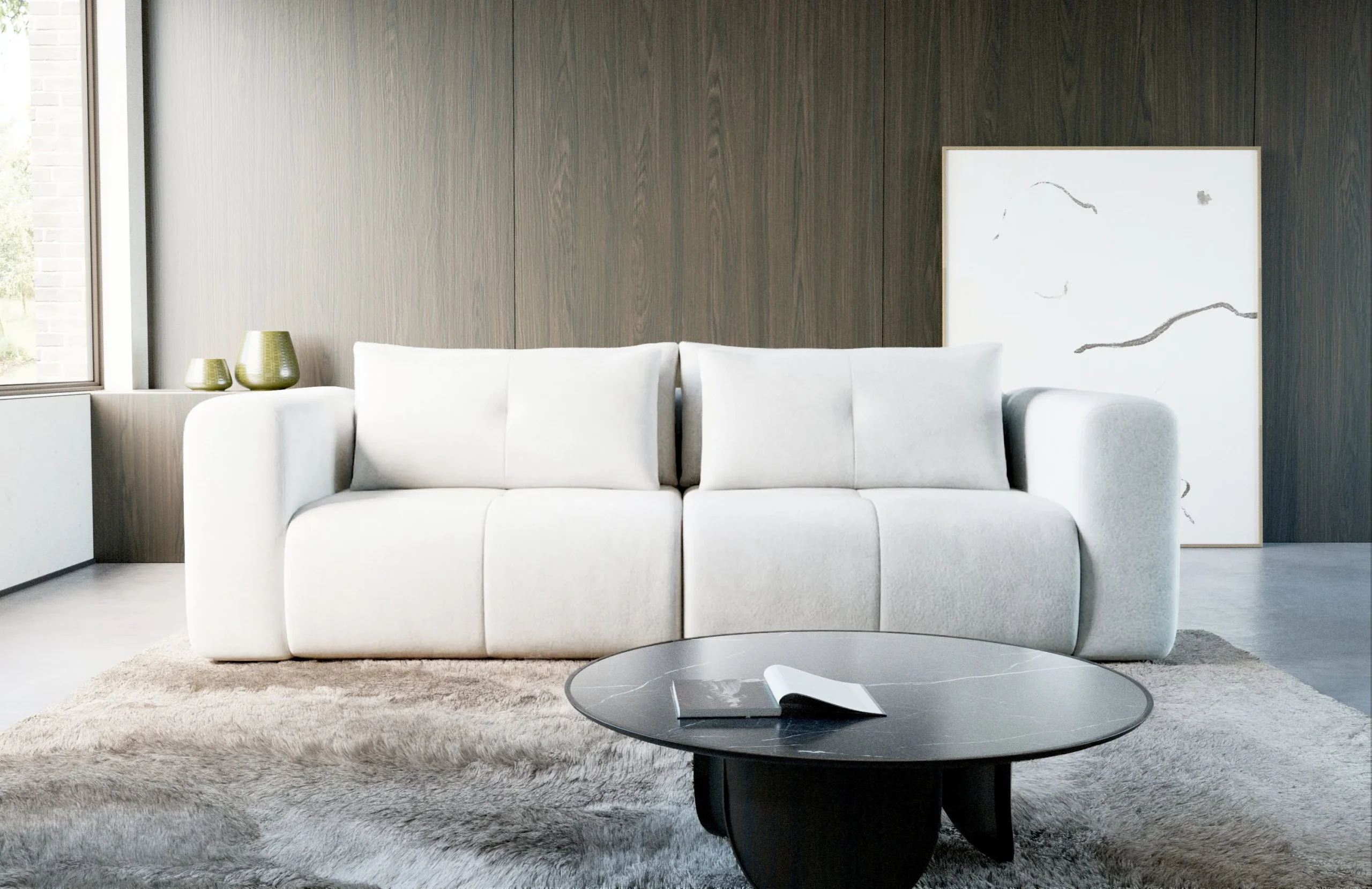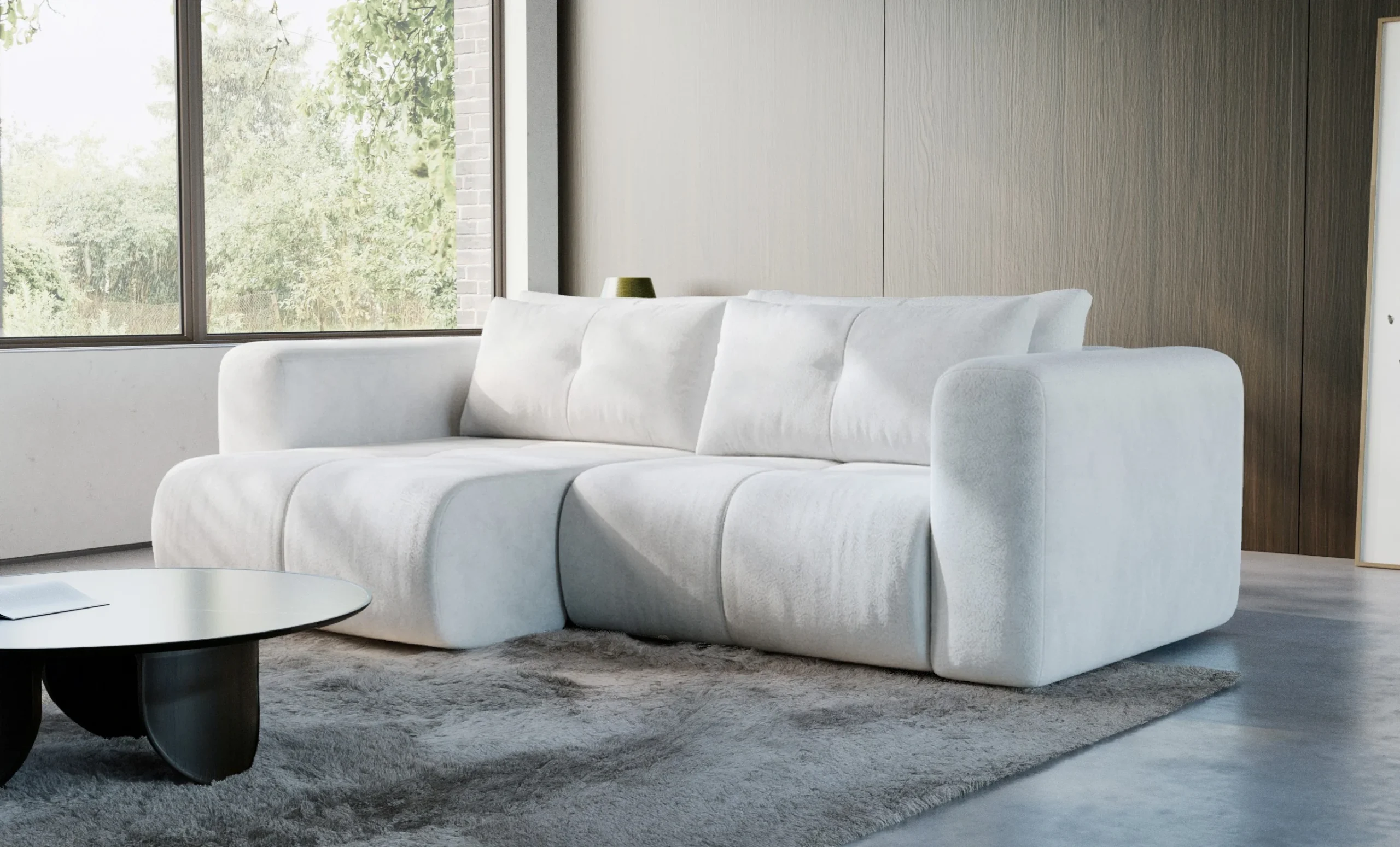 Canapeaua Mira este o piesă statement, concepută pentru cei care apreciază designul puternic, formele bine definite și confortul autentic. Cu o siluetă masivă, dar echilibrată vizual, Mira aduce un plus de personalitate oricărui living modern.