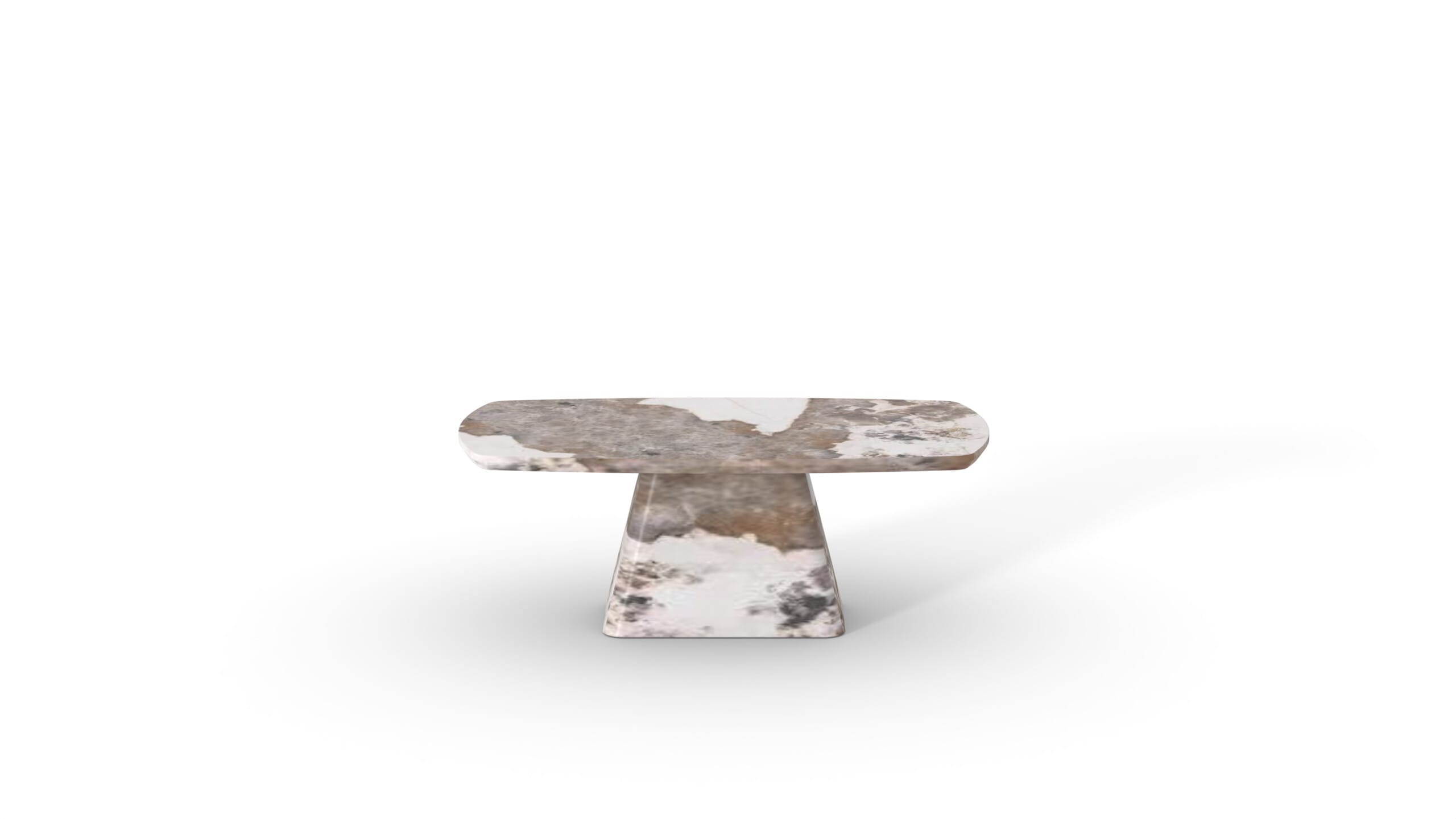 Măsuță de cafea modernă pentru living 120 cm, realizată integral din marmură naturală, design sculptural luxury tip monobloc VITTORIO