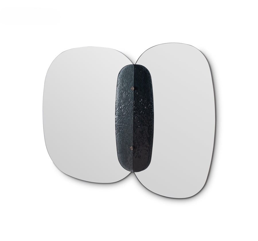 Compoziția echilibrată transformă oglinda într-un obiect sculptural de perete, potrivit atât pentru holuri moderne, cât și pentru livinguri sau spații comerciale cu un caracter rafinat. Diferența de ton dintre oglinda argintie și cea gri oferă dinamism fără a încărca vizual spațiul.