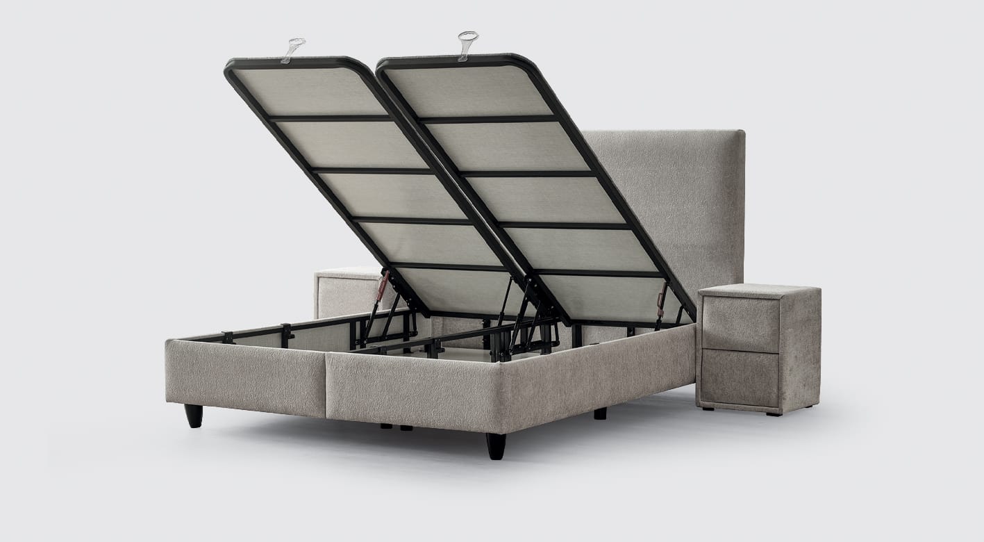 FunctionalitateSpațiu generos de depozitare pe toată suprafața patului, Saltea cu fermitate medie – echilibru ideal între confort și susținere, Design modern, ușor de integrat în orice dormitor, Construcție solidă, gândită pentru utilizare zilnică