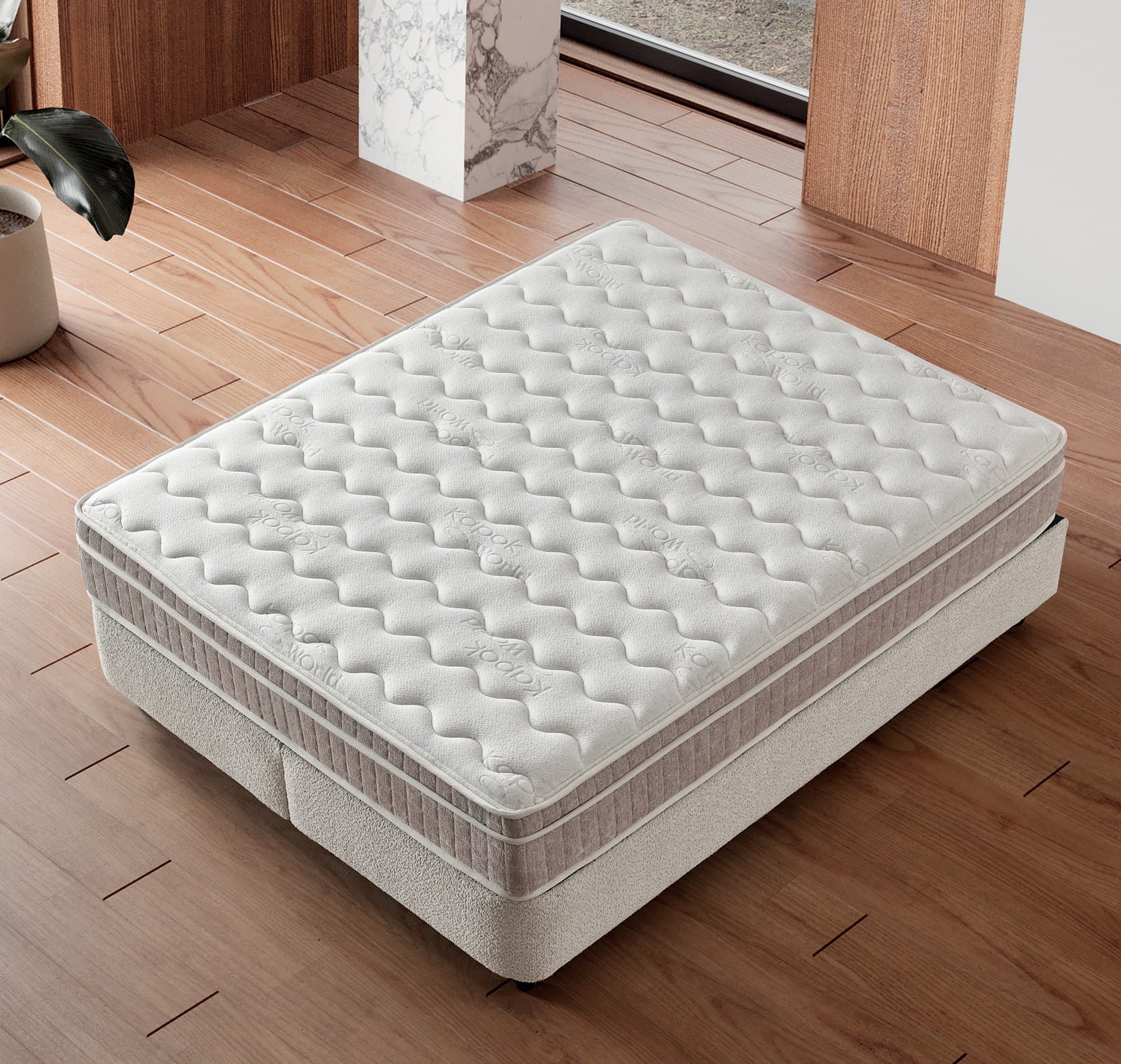 Saltea premiumSaltea cu sistem Pocket Spring (arcuri împachetate individual), concepută pentru susținere corectă și confort echilibrat. Straturile de spumă și materialele textile respirabile asigură o suprafață de dormit stabilă, durabilă și plăcută la atingere, cu fermitate medie.