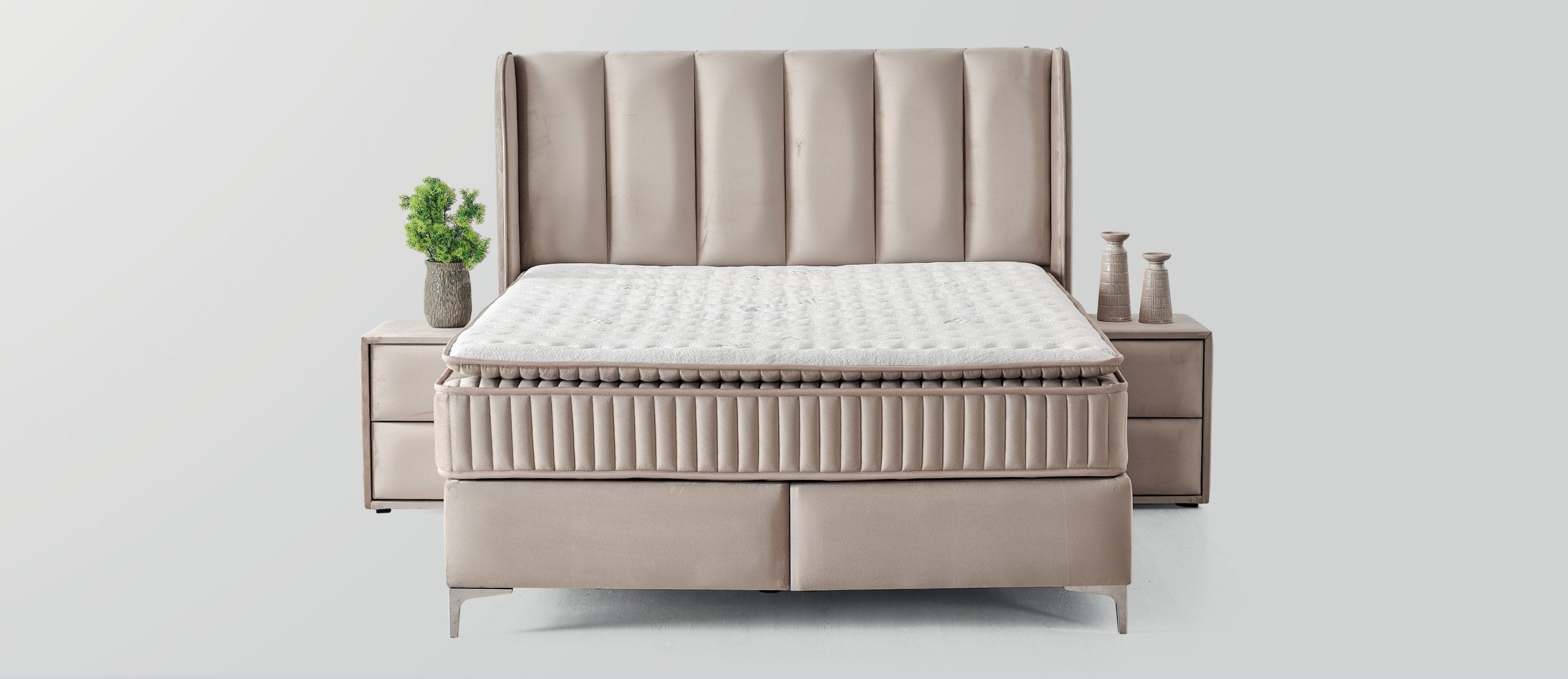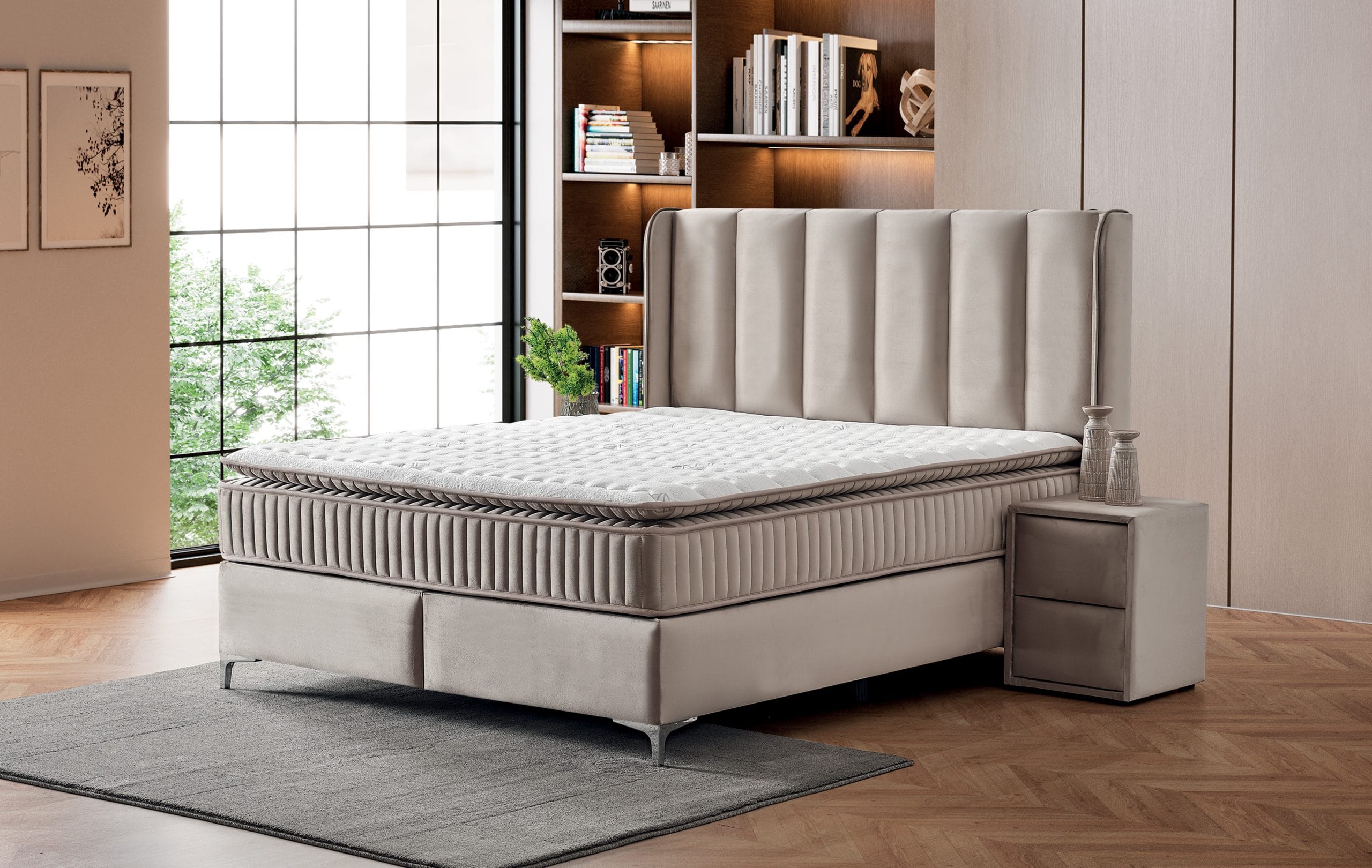 Patul Edda se remarcă printr-un design echilibrat și elegant, în care confortul și estetica modernă se întâlnesc firesc. Tăblia înaltă, cu panouri verticale bine definite, oferă un sprijin generos și adaugă profunzime vizuală dormitorului, creând un punct central rafinat și ordonat. Tapițeria fină, într-o nuanță neutră și caldă, contribuie la o atmosferă liniștitoare, ideală pentru spații dedicate relaxării.