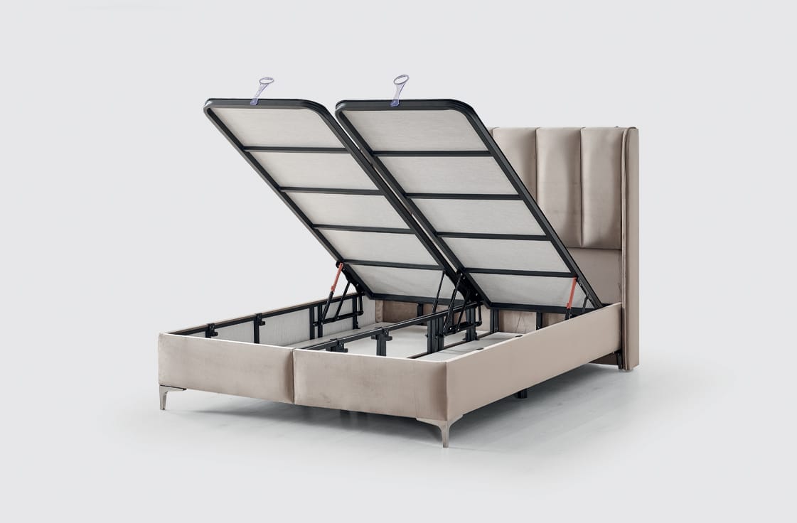 FunctionalitateÎmbină confortul unui pat tapițat premium cu funcționalitatea depozitării integrate, Tăblie confortabilă – ideală pentru citit sau relaxare, Potrivit pentru dormitoare moderne, elegante sau minimaliste