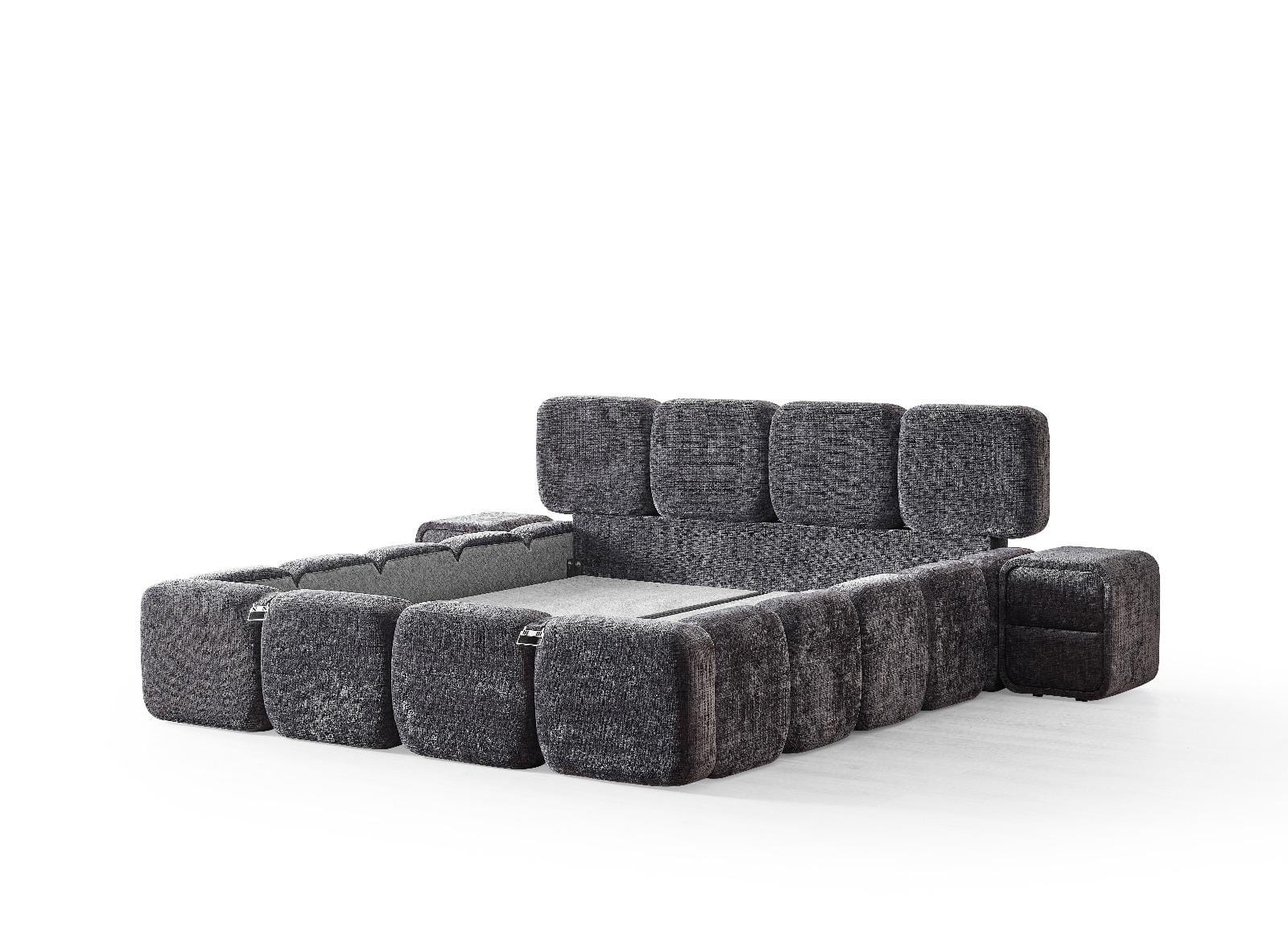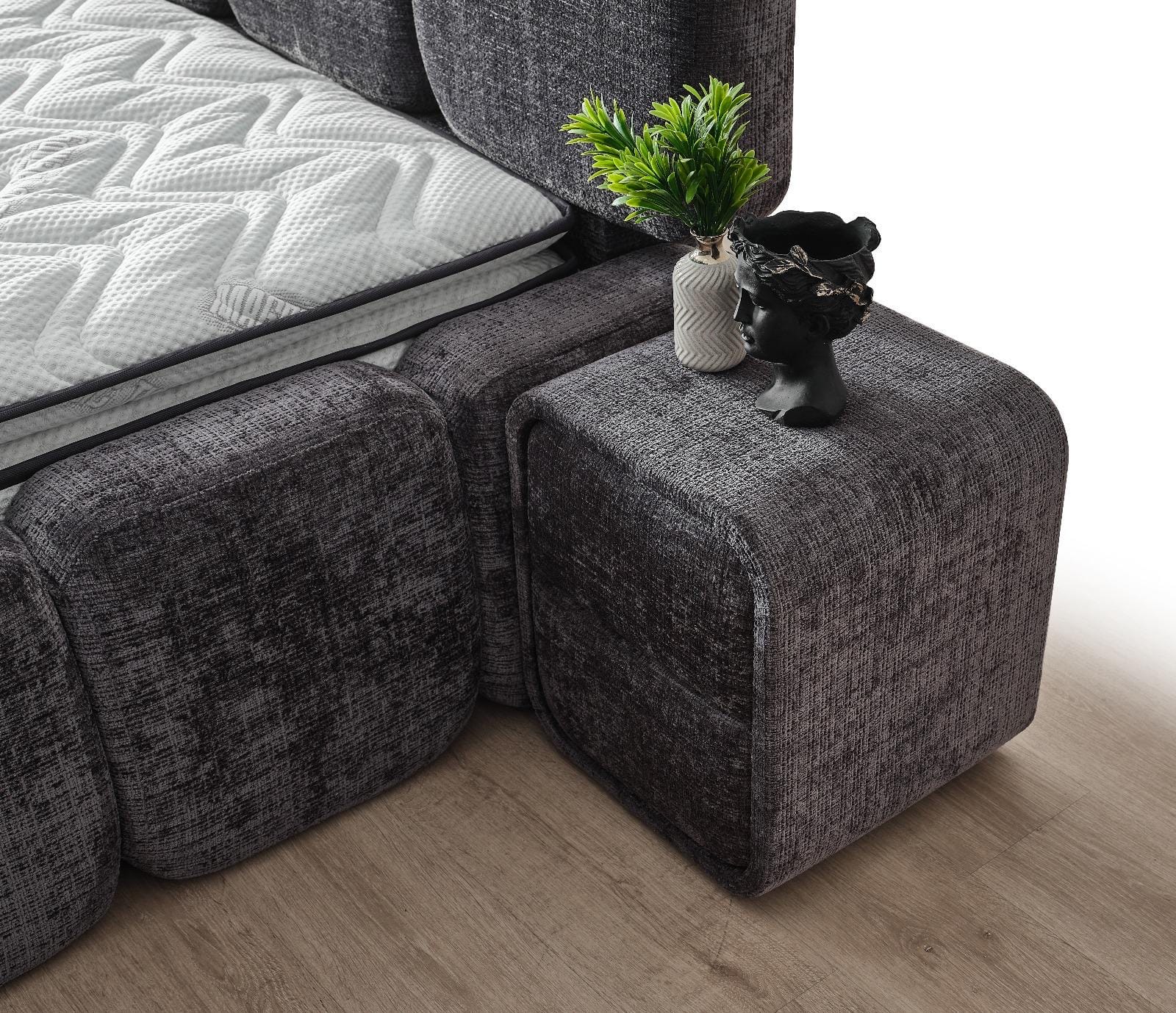 Patul matrimonial MARVEO redefinește conceptul de confort luxuriant, combinând un design modular spectaculos cu funcționalitate avansată și materiale premium. Construit pentru cei care apreciază atât estetica modernă, cât și utilitatea inteligentă, acest pat impresionează prin forma sa unică, cu volume cubice perfect aliniate și tapițerie moale, plăcută la atingere.